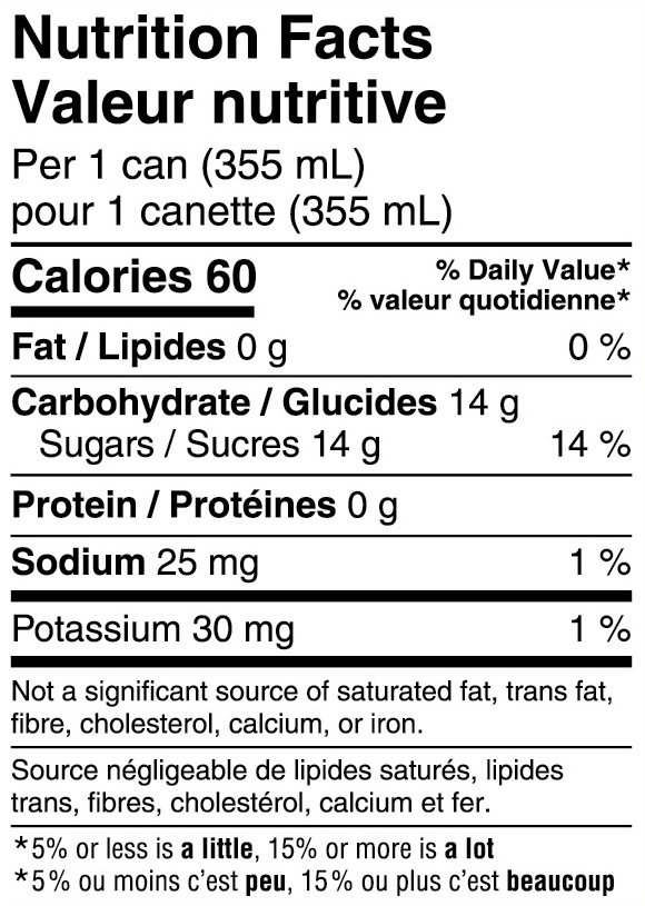 Filtered water, Sugar, Natural flavours, Citric acid, Carbon dioxide, Sodium benzoate, Potassium sorbate.